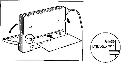Cut sheet paper and envelopes can be fed through the back opening of the printer. The acceptable size for cut sheet paper is B5, A4, letter, and legal.