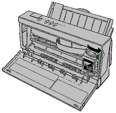 2. Set the green paper thickness lever (inside the printer) to the left position.