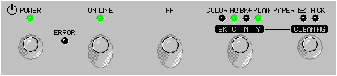 Error light is on steady and Print Mode, Envelope or Thick lights blinking | Ink cartridge out | Replace the ink cartridge that corresponds to the flashing print mode light. If the cartridge is not empty, perform a single-head cleaning procedure for that ink cartridge. |