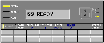 PF FEED PAPER nn | Request to feed nn size paper. nn is a page format selection defined by the host computer | Feed requested paper through manual slot, or press SKIP ERROR button |