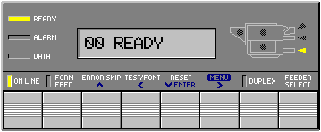PF FEED PAPER nn | Request to feed nn size paper. nn is a page format selection defined by the host computer | Feed requested paper through manual slot, or press SKIP ERROR button |