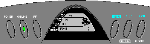 the On Line button to set your printer back on-line. if you neglect to press the Cartridge button when you change a BJ cartridge or an ink tank, the printer returns the cartridge holder to its home position automatically in order to prevent the print head from drying out. The printer notifies you that this has occurred by alternately flashing C and 6 in the display. |