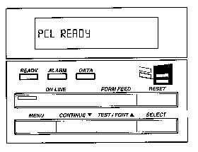 PCL READY | The printer is ready to print. This is the default ready message. | No action is required. If necessary, press ON LINE. |